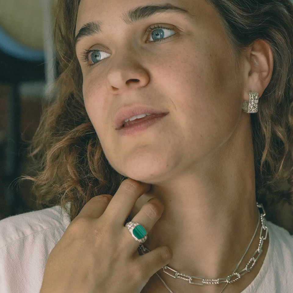 Napisałam do Julii Winiarskiej drżącymi palcami. To spotkanie dwóch rzemiosł od dawna wierciło mi miejsce w sercu. Po pierwszym spotkaniu z błyszczącymi oczami, parującymi głowami wiedziałyśmy, że to początek historii o pasji, wolności twórczej, dziecięcej radości, mocy działania i rzemiosła. Pierwsza kolekcja srebrnej biżuterii
