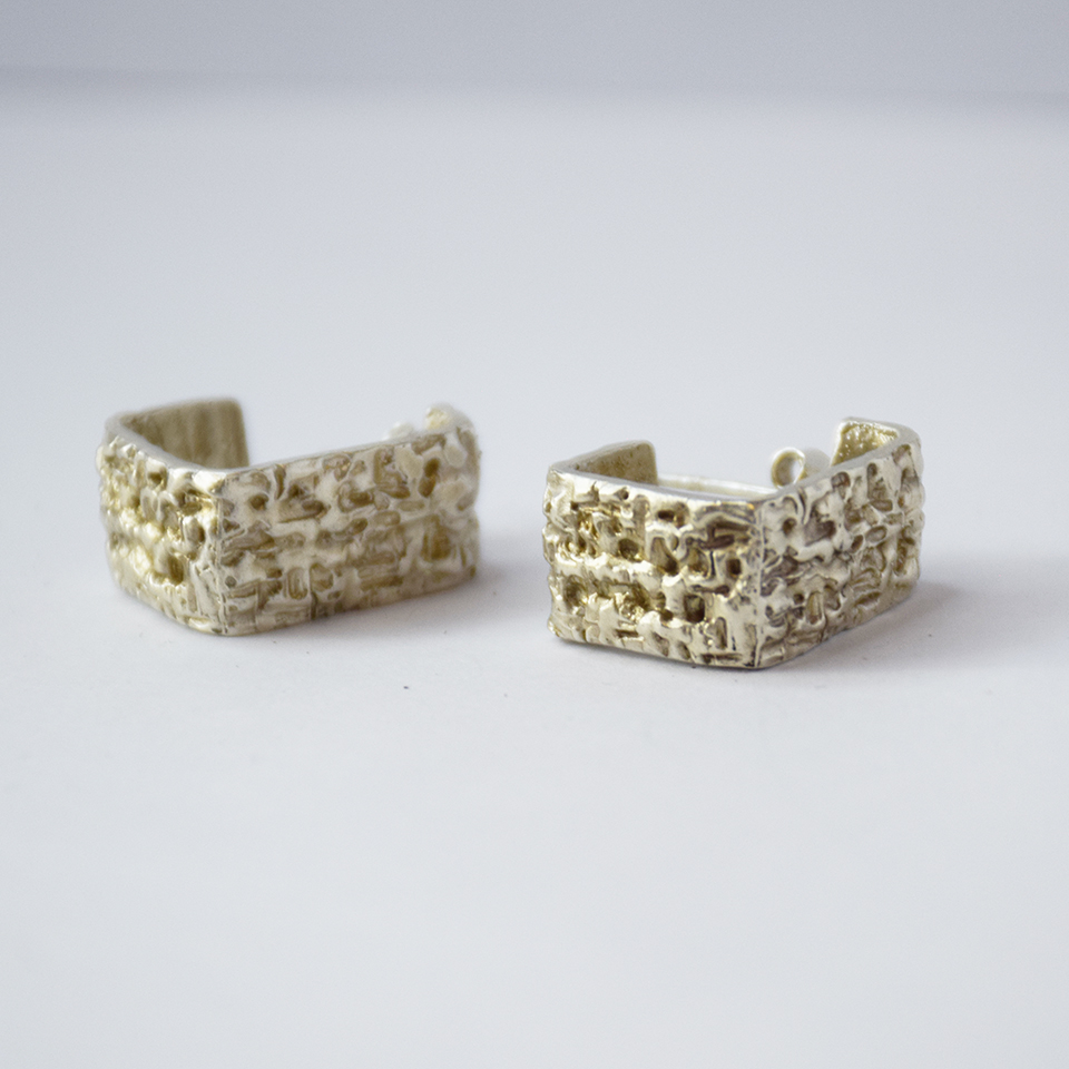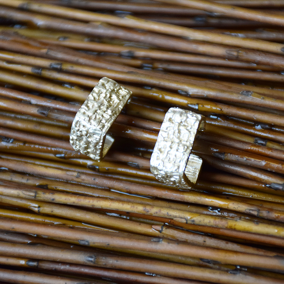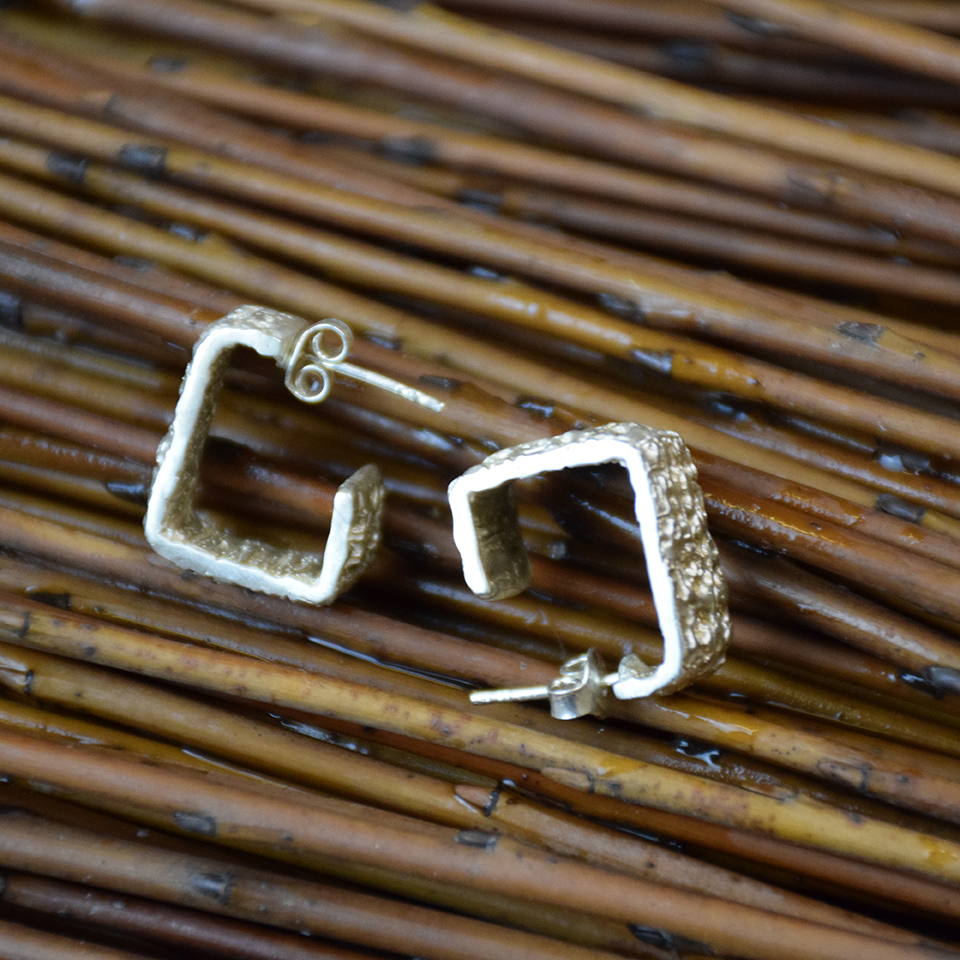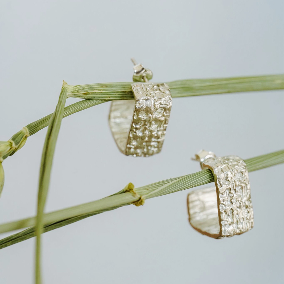 Kolczyki wykonana ręcznie ze srebra próby 925 techniką wosku utraconego. Forma została ręcznie wyrzeźbiona w woku jubilerskim. Następnie każdy kolczyk jest ręcznie szlifowany, wykańczany tak, by zachować jego plecionkarską strukturę i nadać pełen komfort użytkowania.