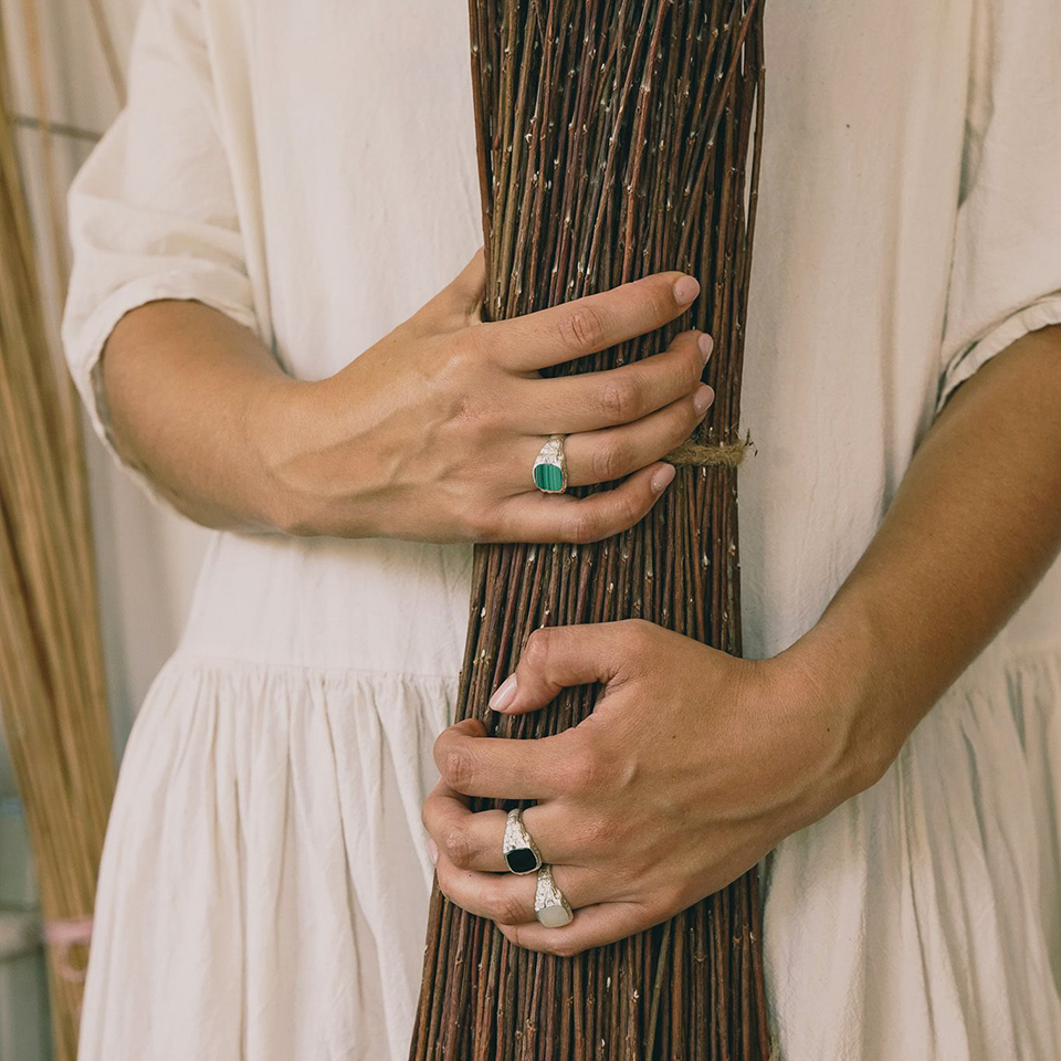 Napisałam do Julii Winiarskiej drżącymi palcami. To spotkanie dwóch rzemiosł od dawna wierciło mi miejsce w sercu. Po pierwszym spotkaniu z błyszczącymi oczami, parującymi głowami wiedziałyśmy, że to początek historii o pasji, wolności twórczej, dziecięcej radości, mocy działania i rzemiosła. Pierwsza kolekcja srebrnej biżuterii
